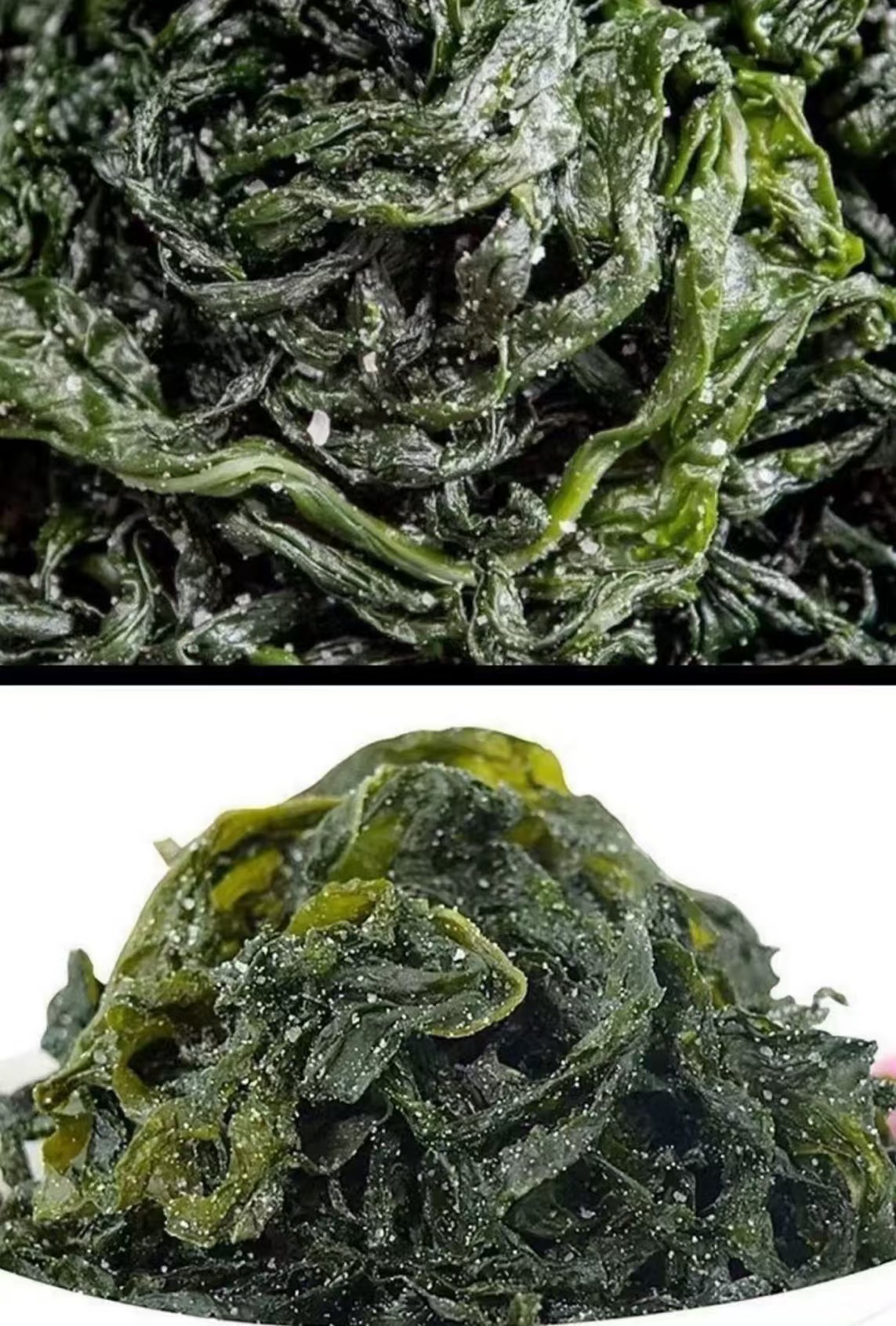 裙带菜的收割期与当年海水温度有很大的关系,一般来说,主要集中在2月-5月之间。从海上收割上来的新鲜裙带菜,如果将它放置而不马上进行加工的话,就会因裙带菜自身“酶”的作用被消化,在短时间内失去海藻特有的味道和光泽,藻体失去弹性。因此,为了能够常年食用裙带菜,人们从很久以前就开始创造出各种各样的加工方法,我们在市场买到的裙带菜基本上都属于加工品。市场上贩卖的裙带菜商品种类基本上分为盐渍品和干燥品两大类,而每一大类中又包含着许多小的种类。